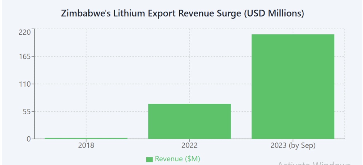 With these investments, production and exports surged. Output jumped to about 14,900 tonnes in 2023 and 22,000 tonnes in 2024. Export revenue reflected this boom: lithium went from less than $2 million in 2018 to roughly $70 million in 2022, then to $209 million by September 2023. By late 2023, lithium was on track to become Zimbabwe’s third-largest mineral export (after gold and platinum). In sum, a 2020s investment frenzy lifted Zimbabwe from near-zero lithium production to tens of thousands of tonnes in just a few years.